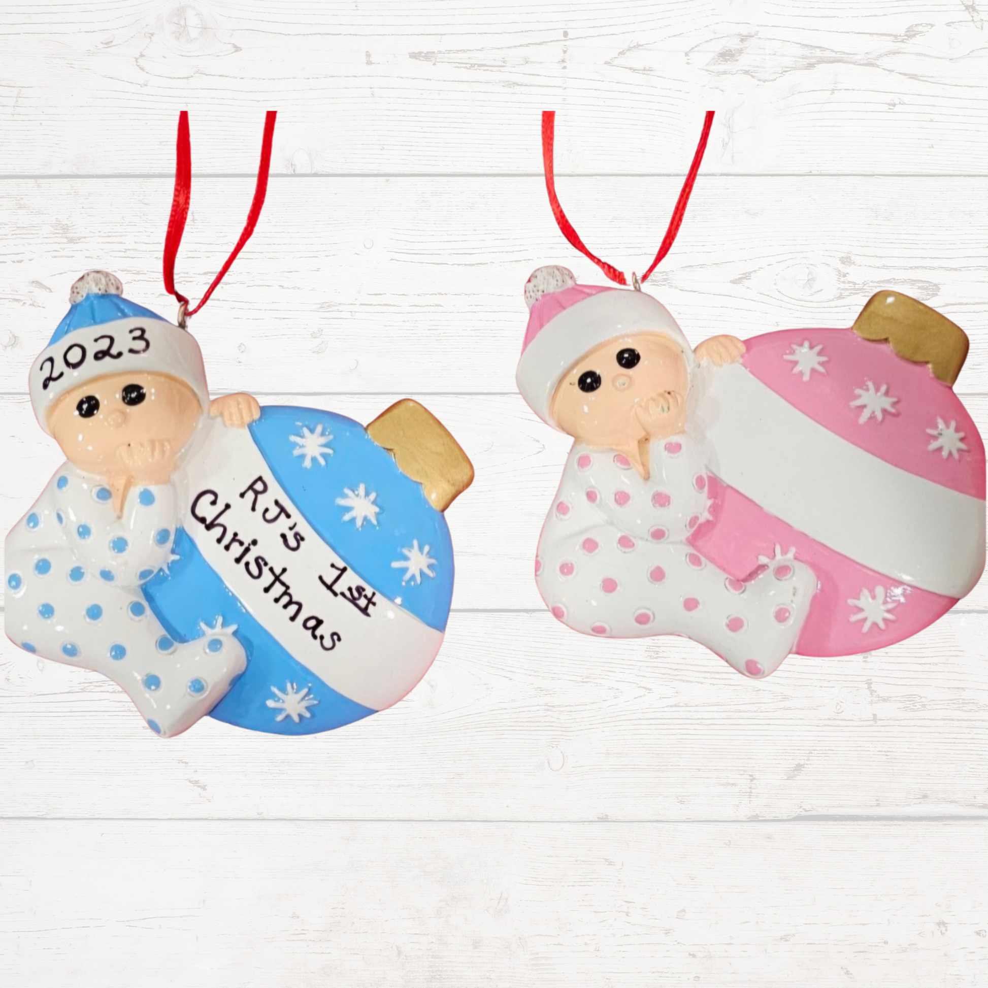 Celebrate and cherish your little one's first Christmas with our personalized ornament. This ornament can be customized with your baby's name and the year for a special touch. A perfect keepsake to commemorate this special milestone.