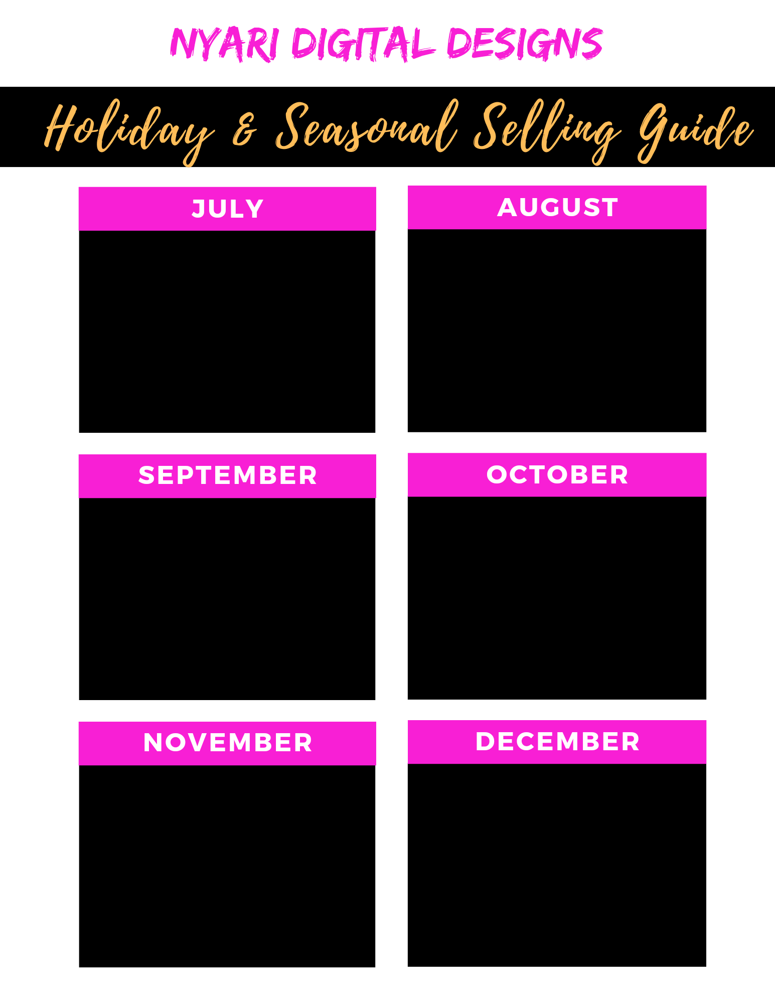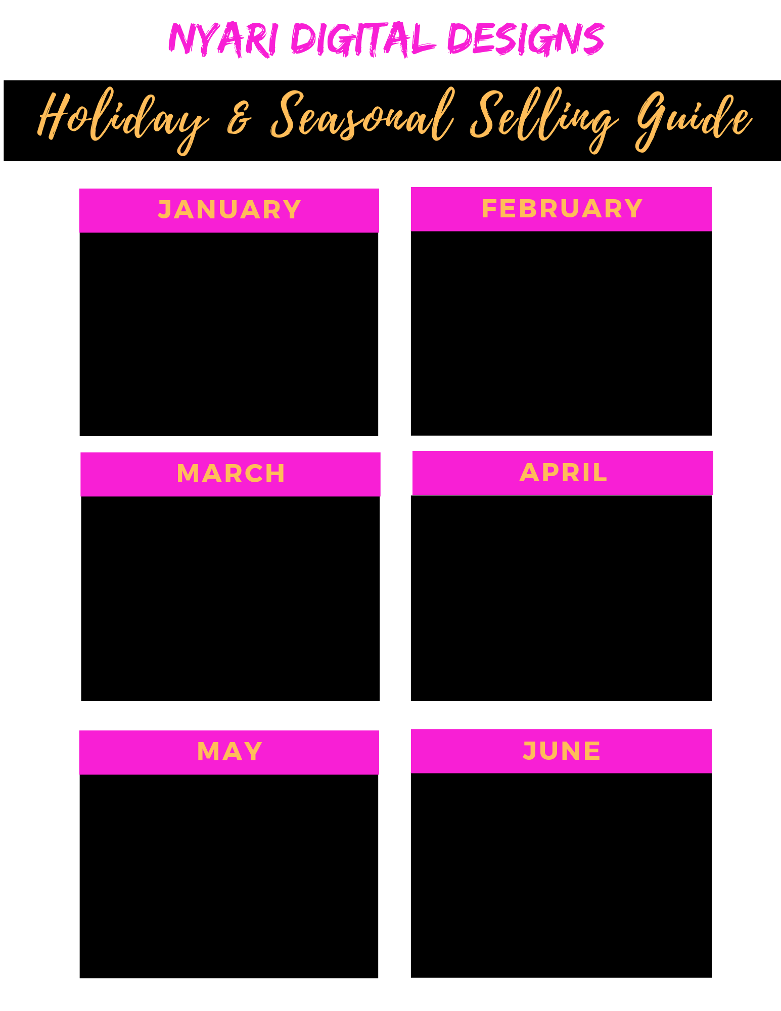 Stay on top of your sales game with our Holiday selling guide for Crafters. Don't stress about which holidays and "National Days" fall in each month...We've got you covered! Our helpful guide will keep you on track and organized throughout the busy season, so you can focus on what you do best - creating beautiful crafts. Don't miss out on potential sales. Let us help you stay ahead of the calendar!