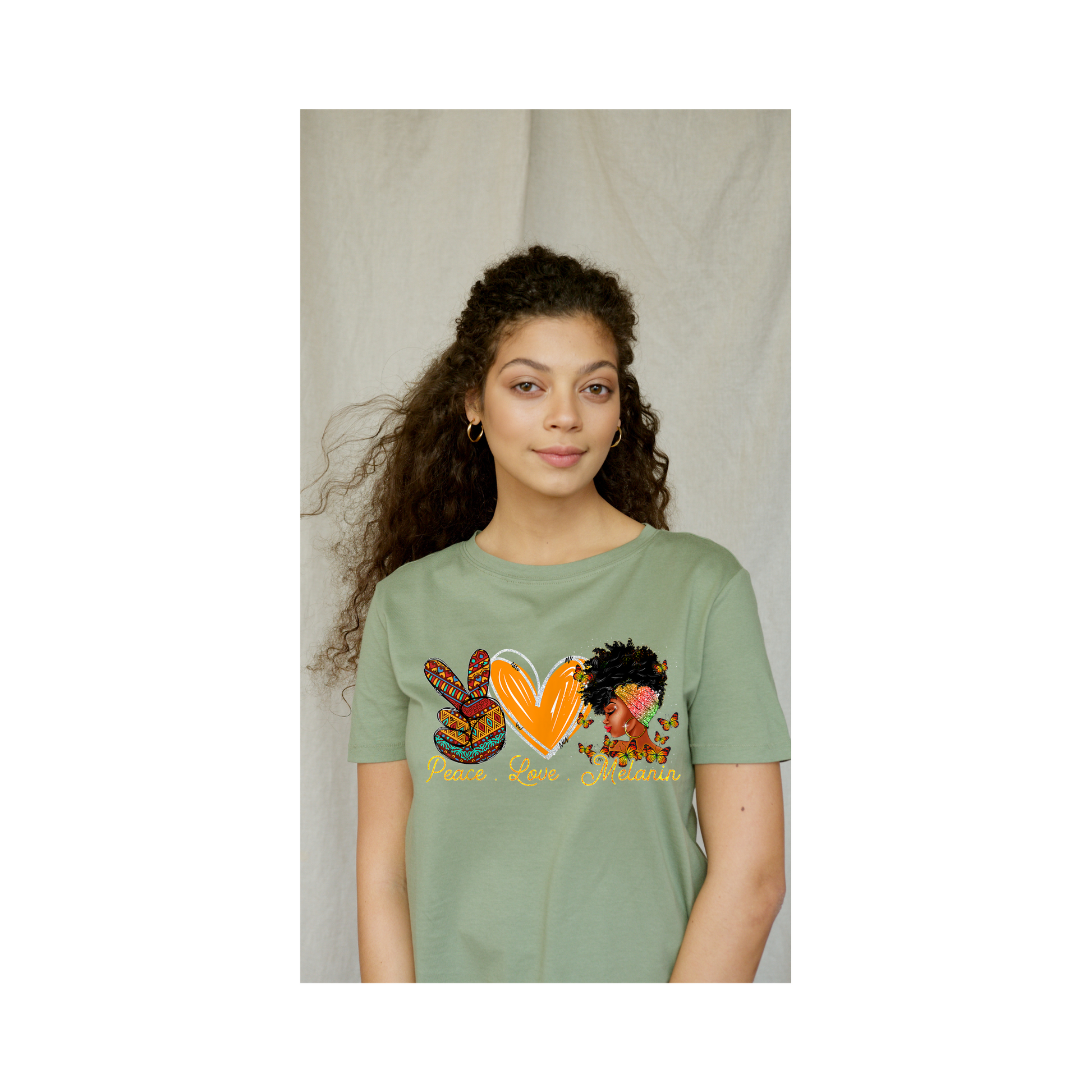 Celebrate pride and unity with the Peace Love Melanin Shirt, designed to uplift and inspire. This comfortable shirt highlights the beauty of melanin while spreading a message of peace and love. Perfect for expressing your support and embracing diversity in style.