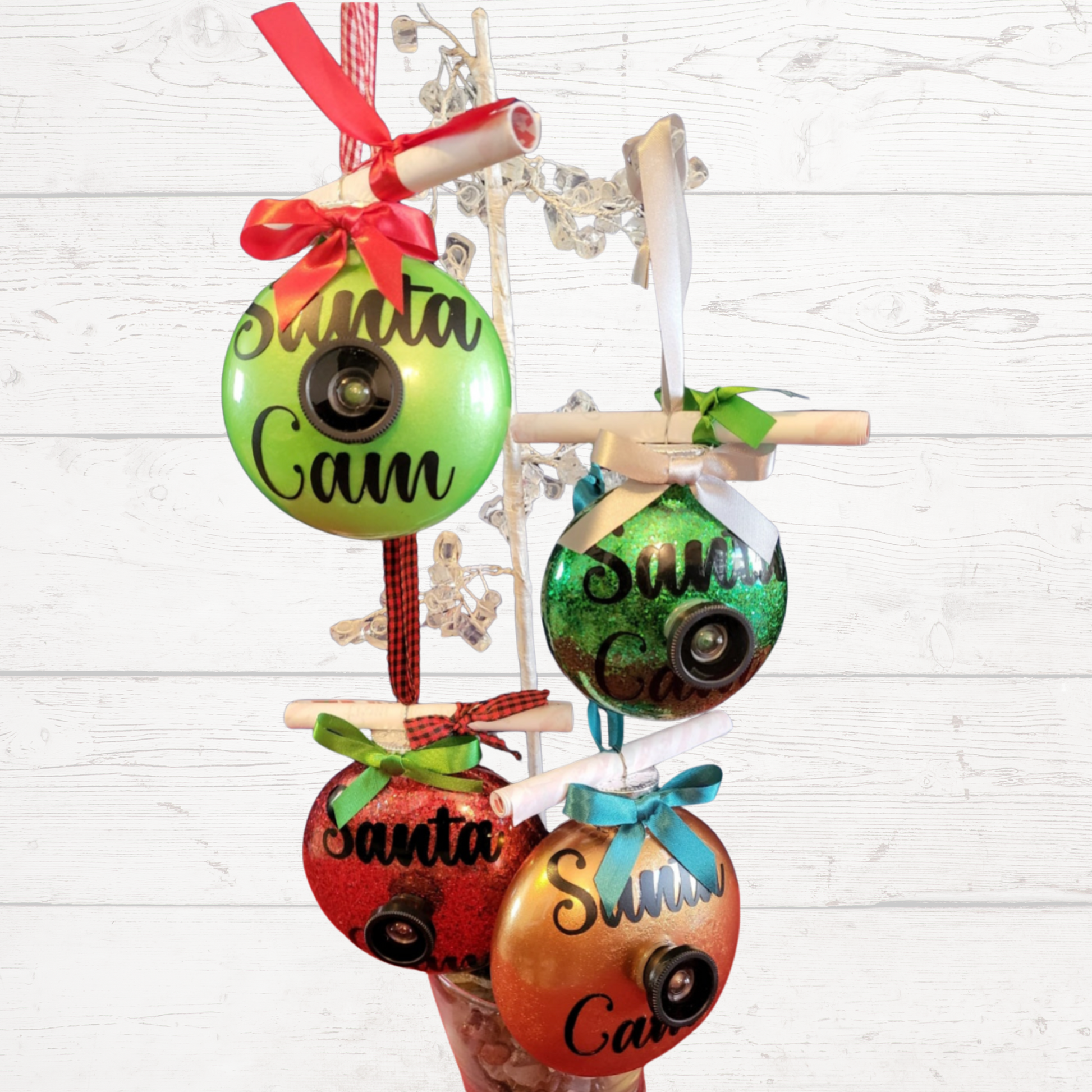 "Keep the Christmas spirit alive with our "Santa Cam" ornament! With this festive decoration, Santa will know if you've been naughty or nice. Your kids are sure to love their personalized letter from the North Pole, written by the big man himself! Spread joy and cheer this holiday season with a Santa Cam!" Elf Cams available also.