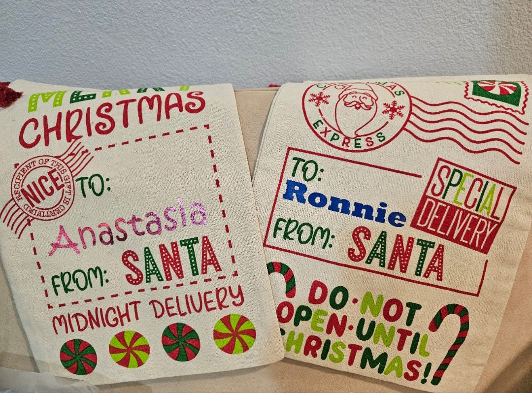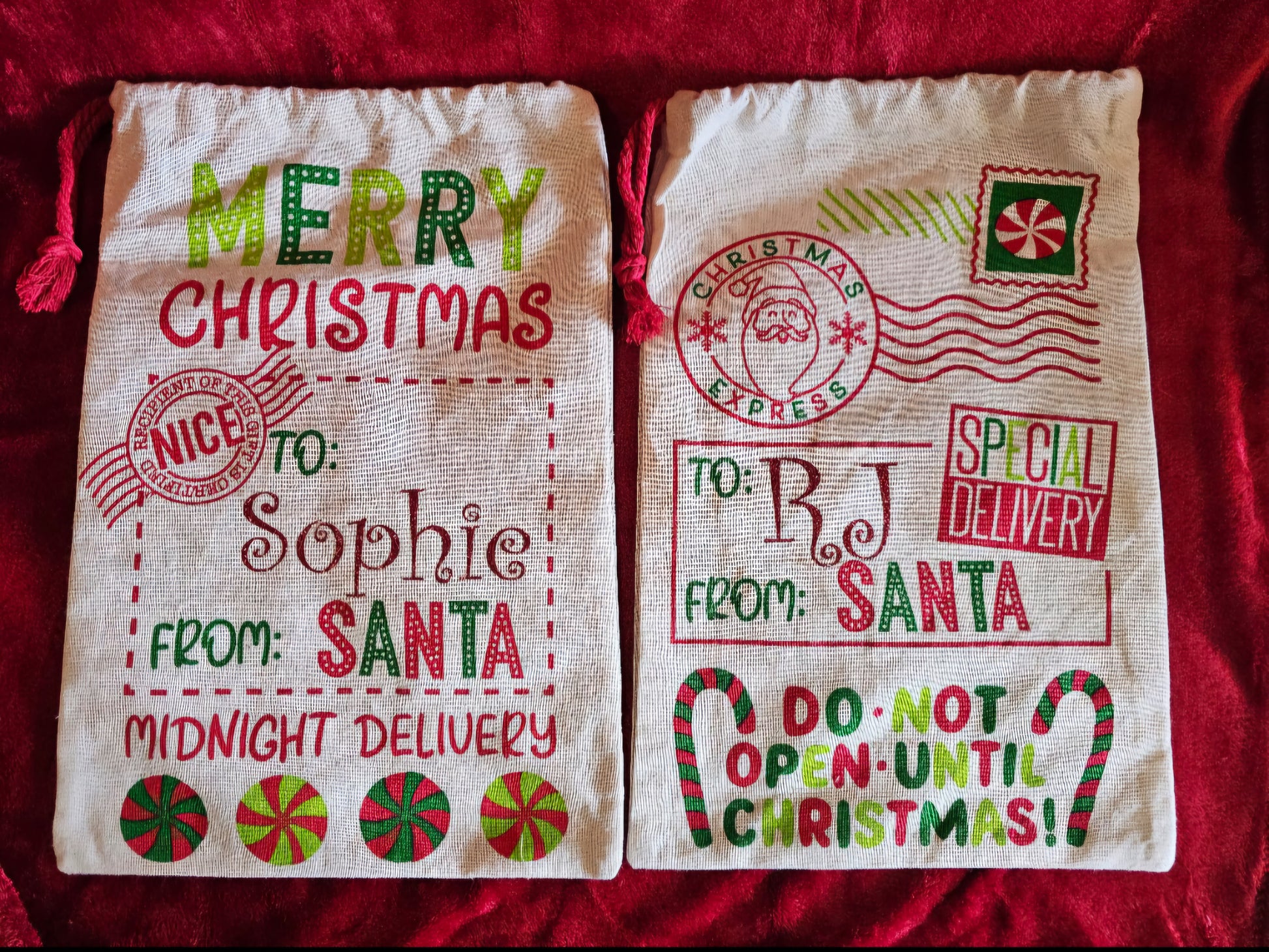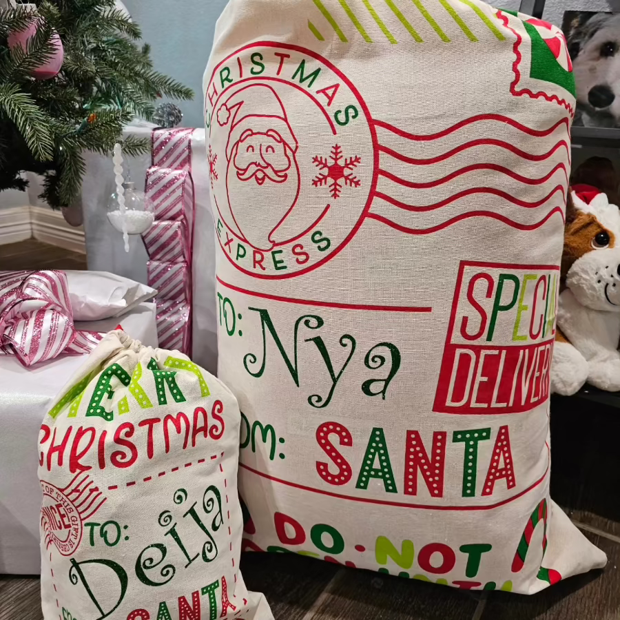 "Get ready to "sleigh" the gift-giving game with our Santa Sacks! These sacks make wrapping and presenting gifts a breeze (and they're perfect for any size presents). Time to spread holiday cheer and save yourself some wrapping paper (and sanity). Ho ho hope you love them!"