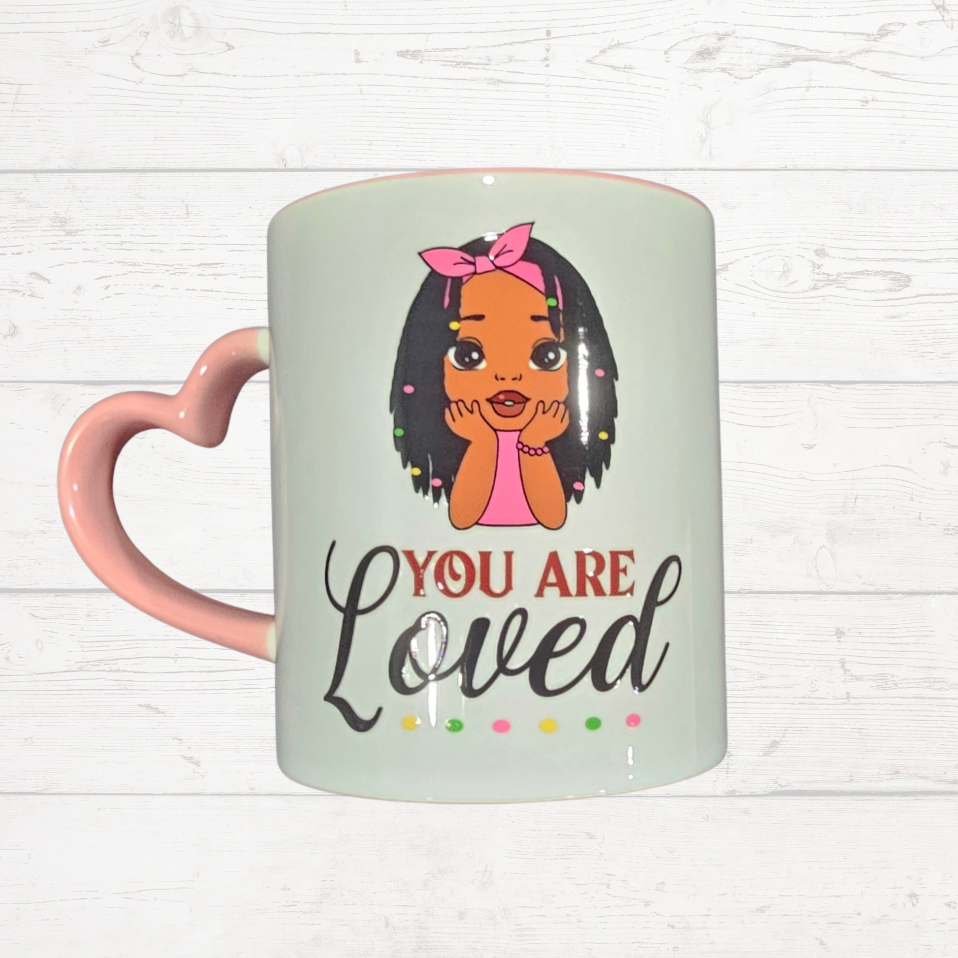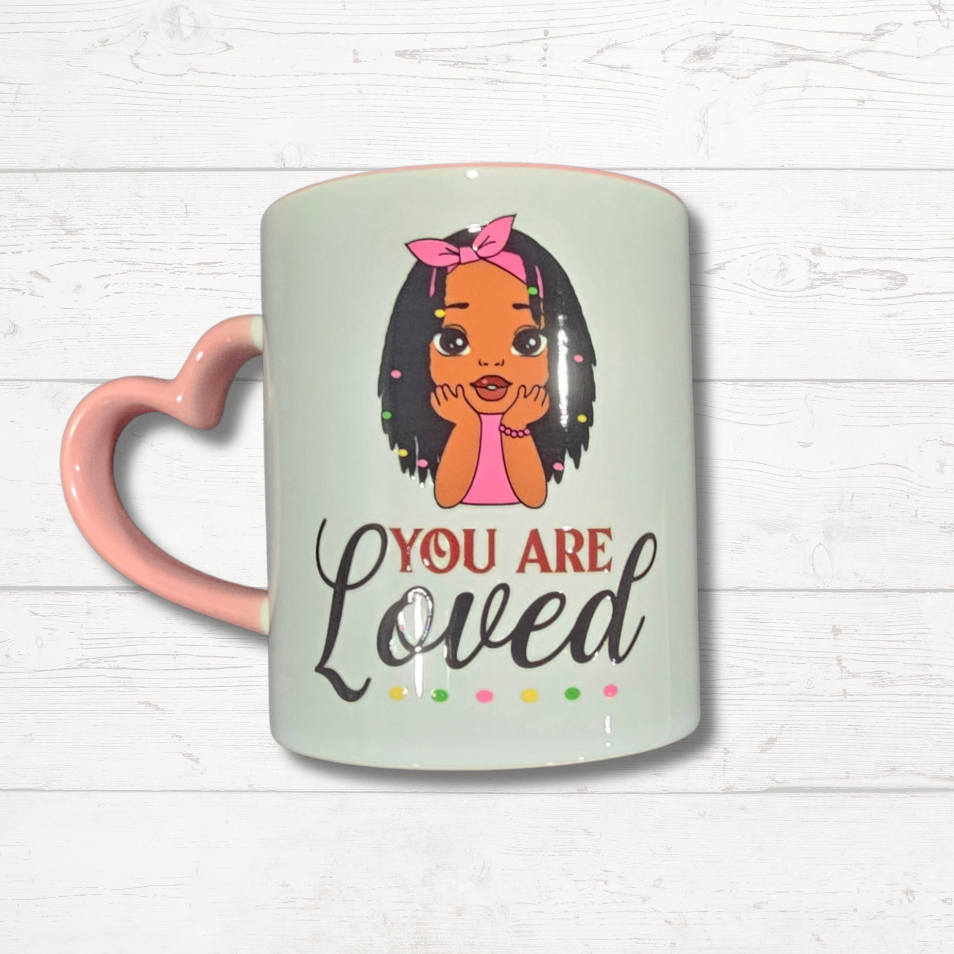 Show your love with the "You are Loved" heart handle mug. This beautifully crafted mug serves as a constant reminder of love and affection for someone special. With its heartfelt message and sturdy design, it's the perfect gift for any occasion. Share your love with this unique and meaningful mug.